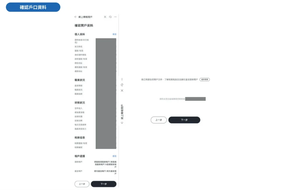 閱讀開戶資料,確定資料無誤後,簽署確認。